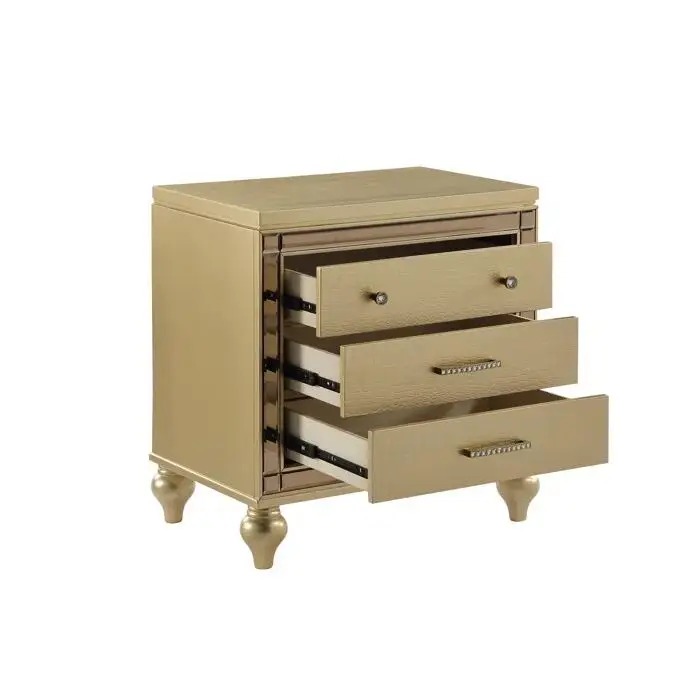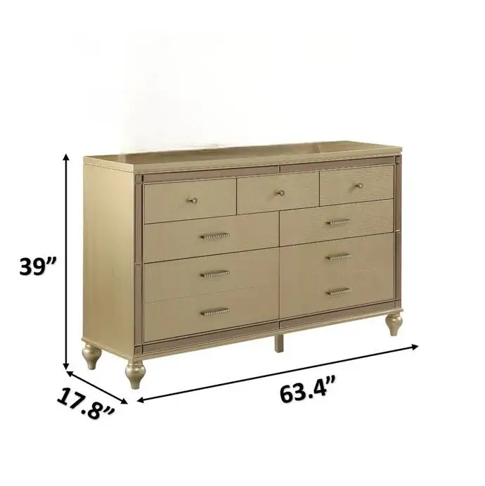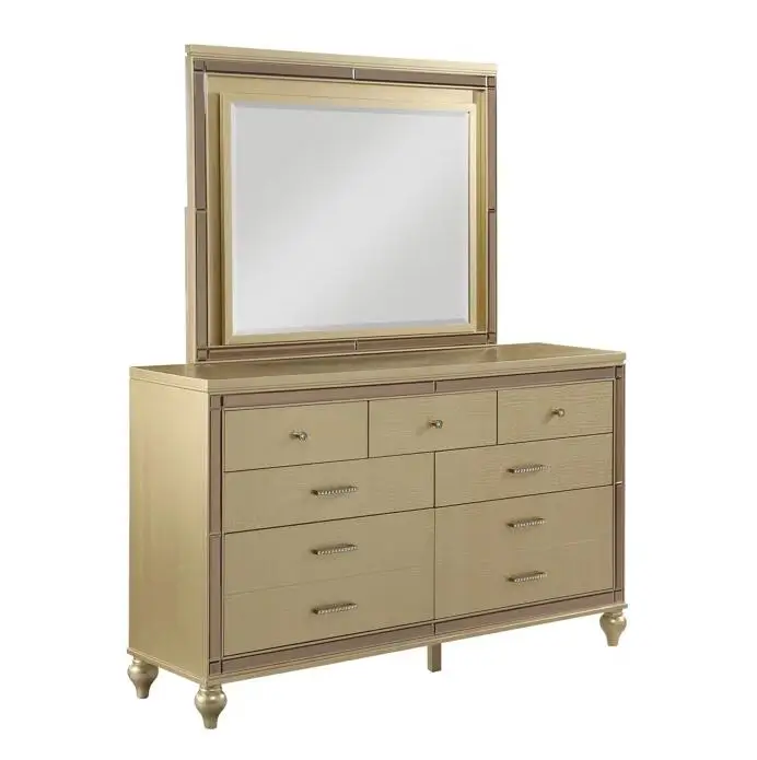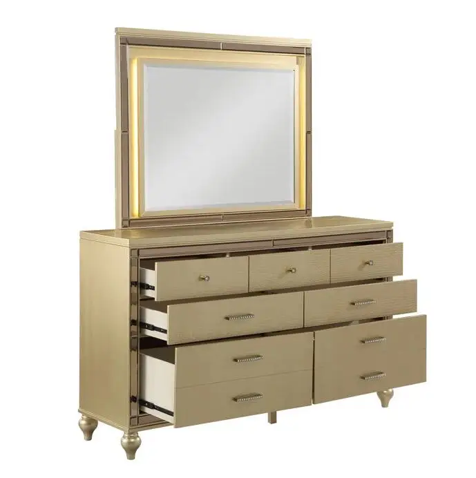 Redesign your home with this Glamorous, refined collection, which features a Mirror Front Frame, Silver-accented hardware, and framing that will give your space a sophisticated air. Add more color to your room with this bedroom set. This Mirror design all around gives your bedroom a more glamorous feel. The classy look of the bedroom set adds a balance of modern and exquisite style. Elaborated detailing for this Bed will surely bring true splendor into your home. The Bed with silver finish wood is ultra-contemporary in design and scale that will add modern flair to your bedroom. This exceptionally beautiful Bed features crystal tufted upholstery on the headboard. All the drawer fronts have diamond drawer pulls, and the top has a slick feel that enhances the gorgeous bedroom's beauty. The headboard includes an LED light that will improve the ambiance of your bedroom. Each case piece is highlighted with a Mirror accent inserted in the frame. Matching Nightstands and other bedroom set pieces complete the entire look to your taste. The Mirror includes an LED light that will accommodate you whether you're taking a picture or getting ready daily. Add glam to any bedroom with this top-selling design. Indulge in the exquisite details while awake and in restful sleep at the end of each day.