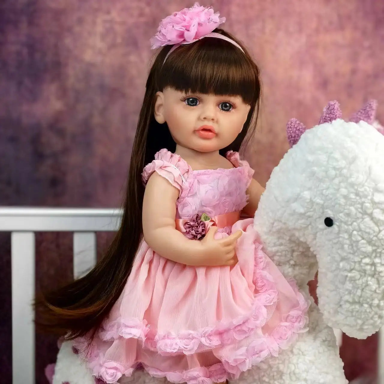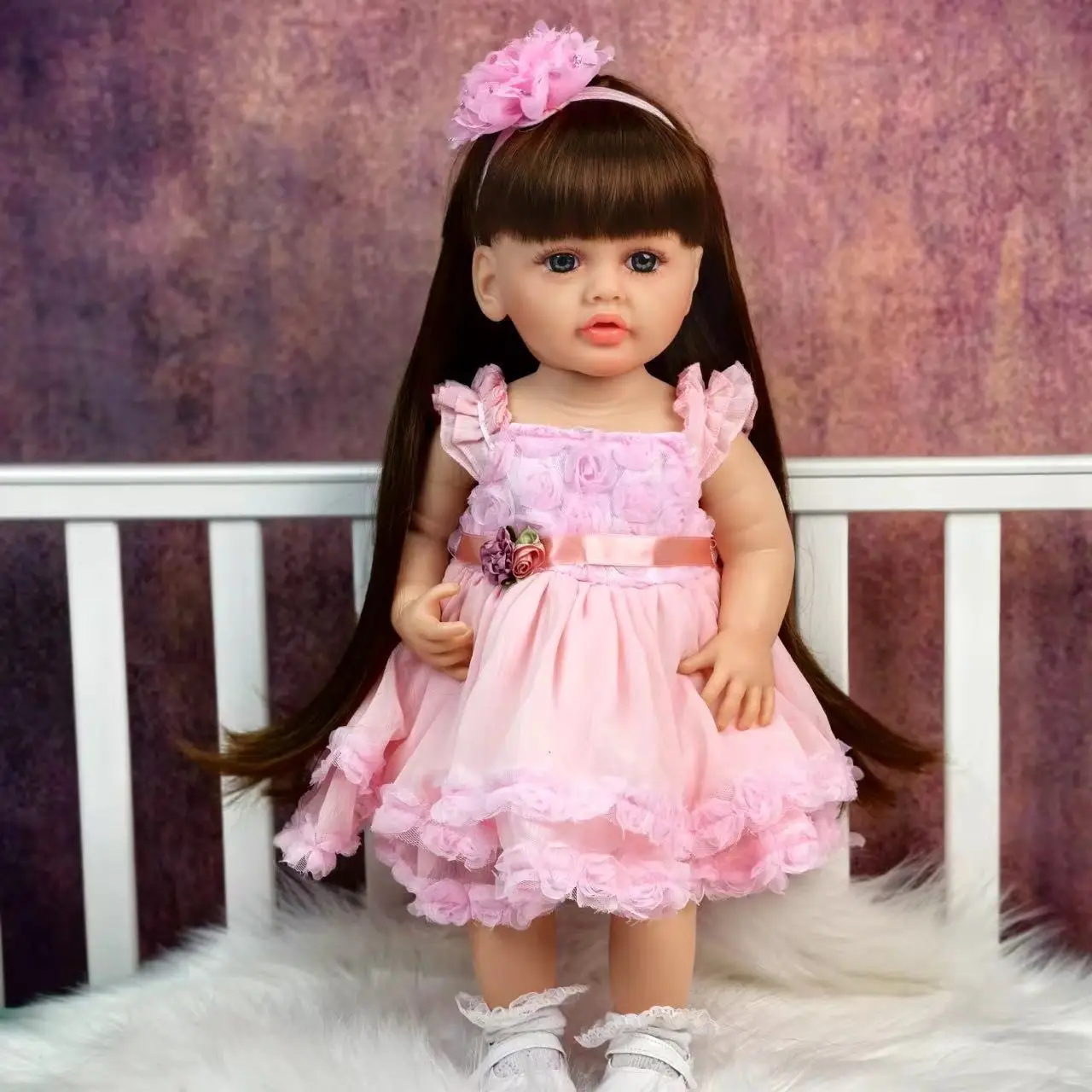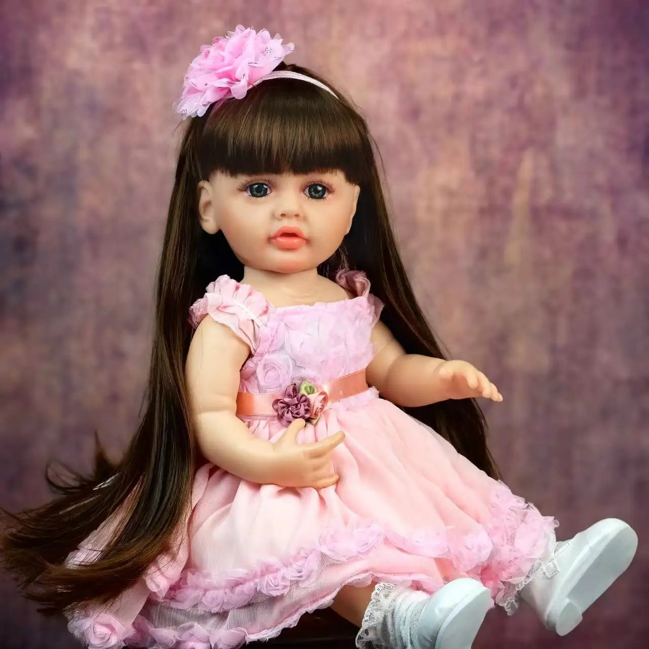 Reborn Baby Doll Realistic 55 cm Full Silicone Vinyl Body Long Brown Hair