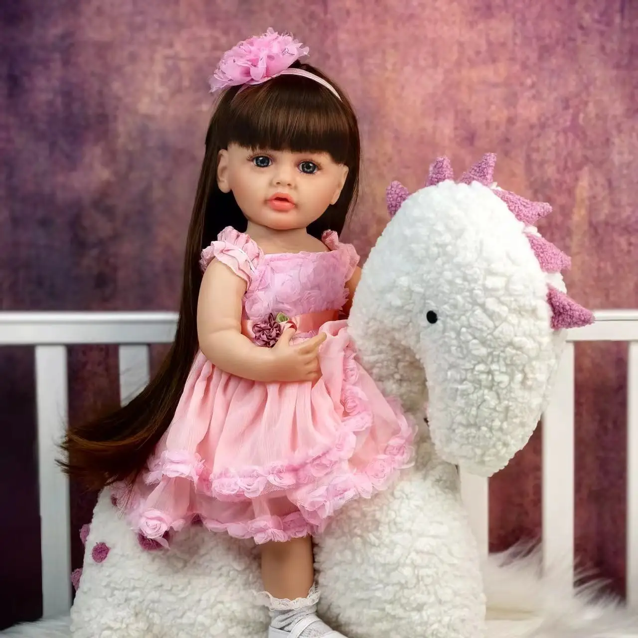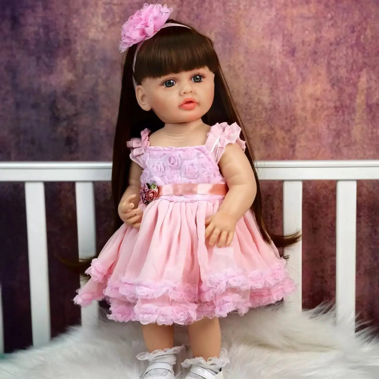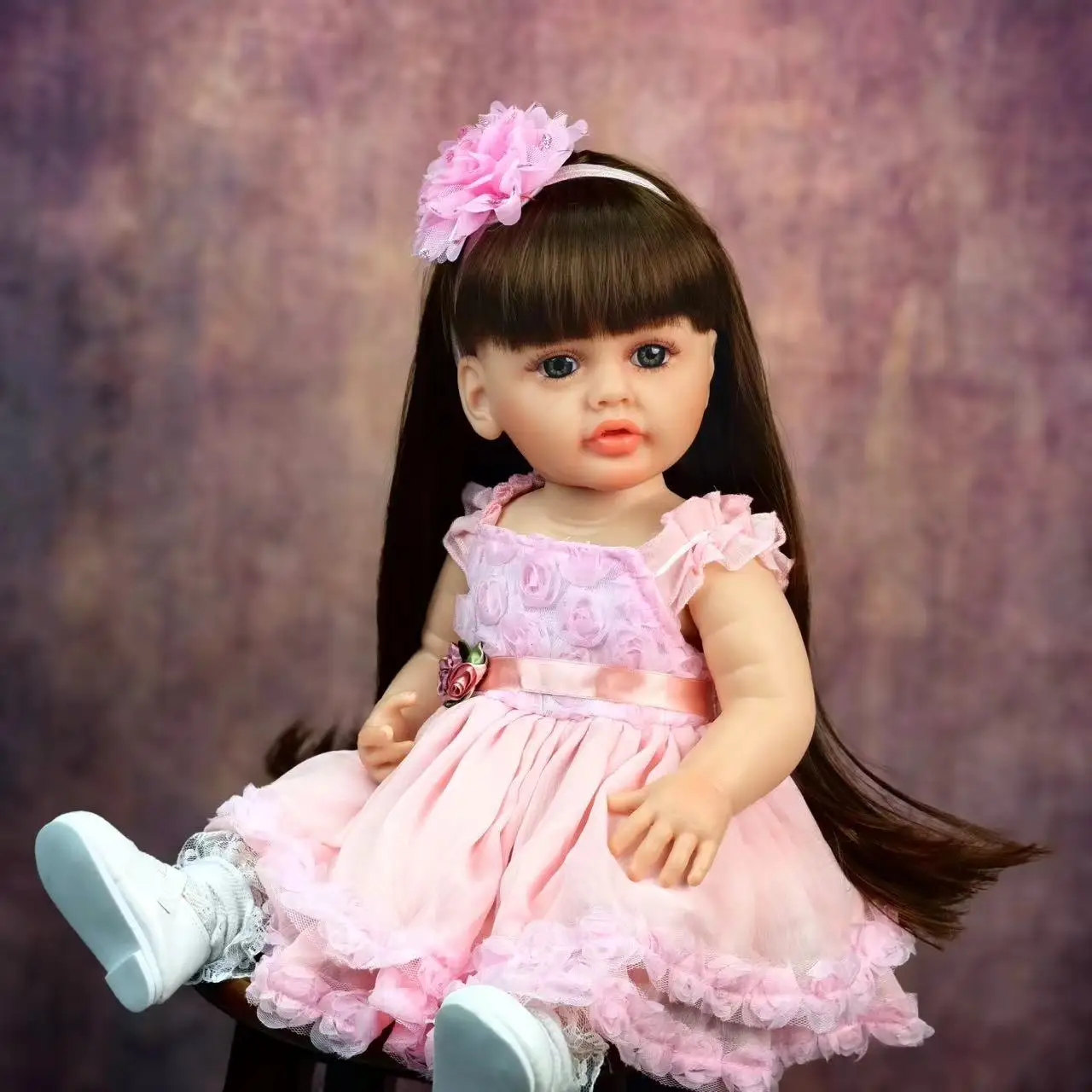 Reborn Baby Doll Realistic 55 cm Full Silicone Vinyl Body Long Brown Hair