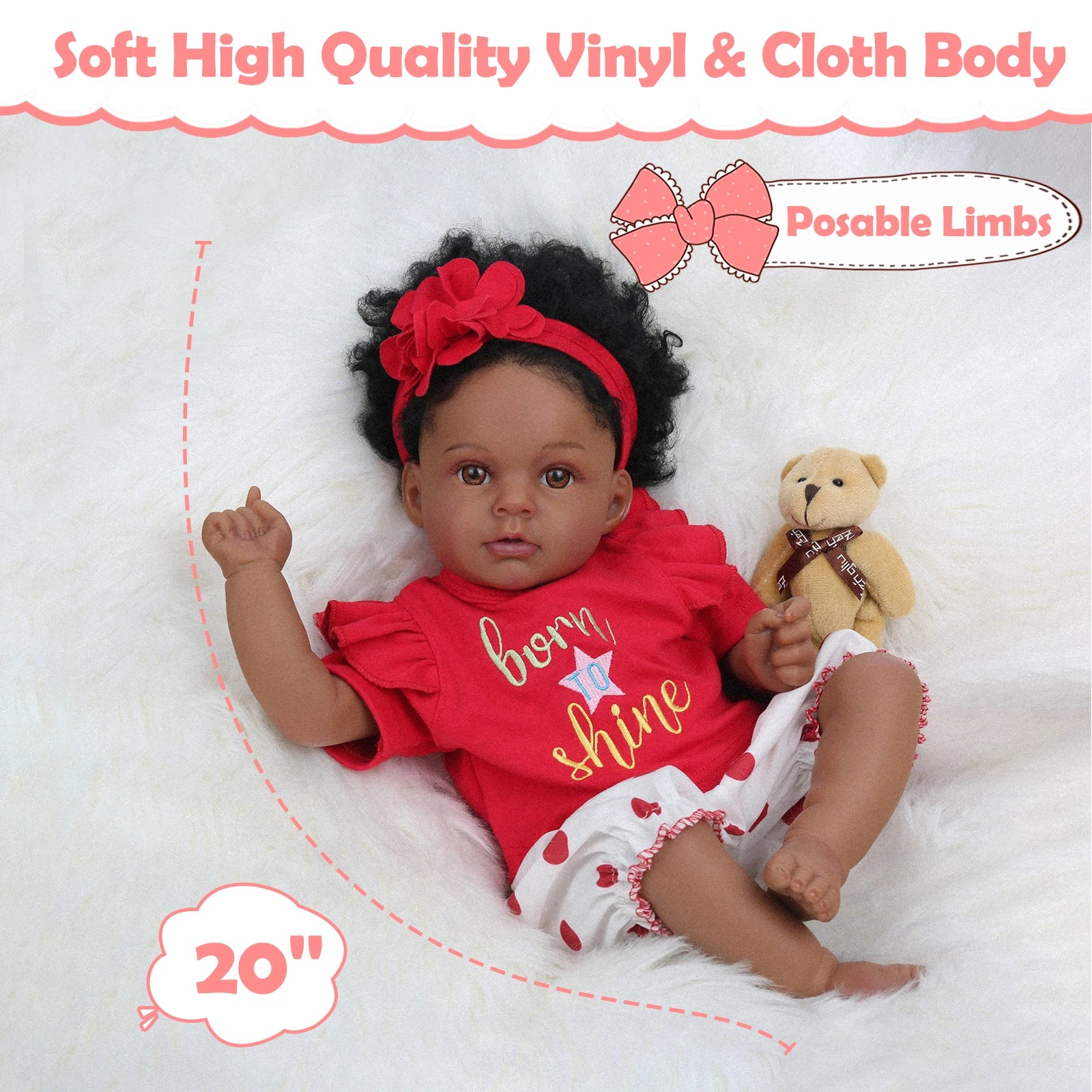 Reborn Baby Dolls Black Girl, 20 Inch Realistic Newborn Baby Dolls