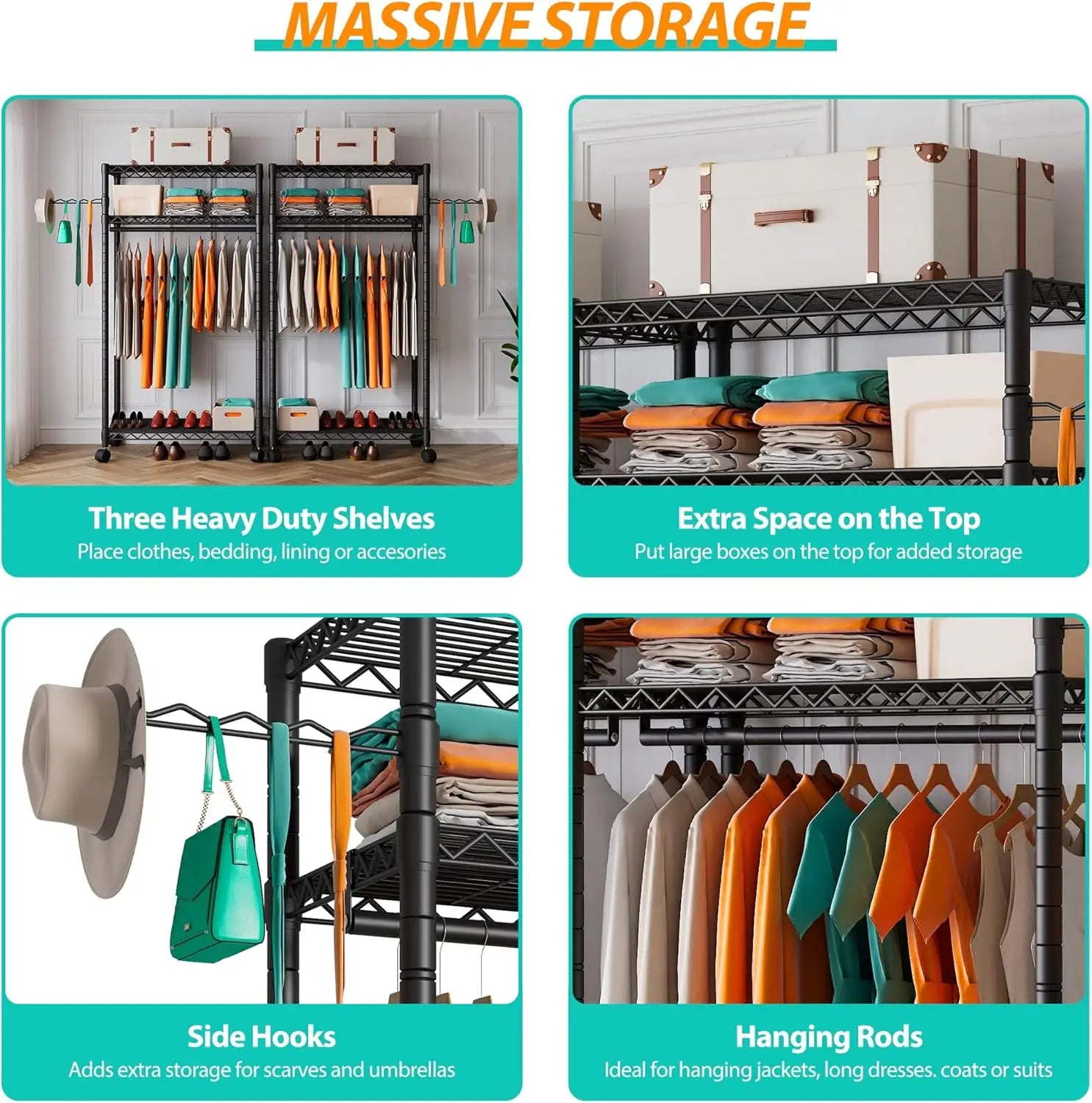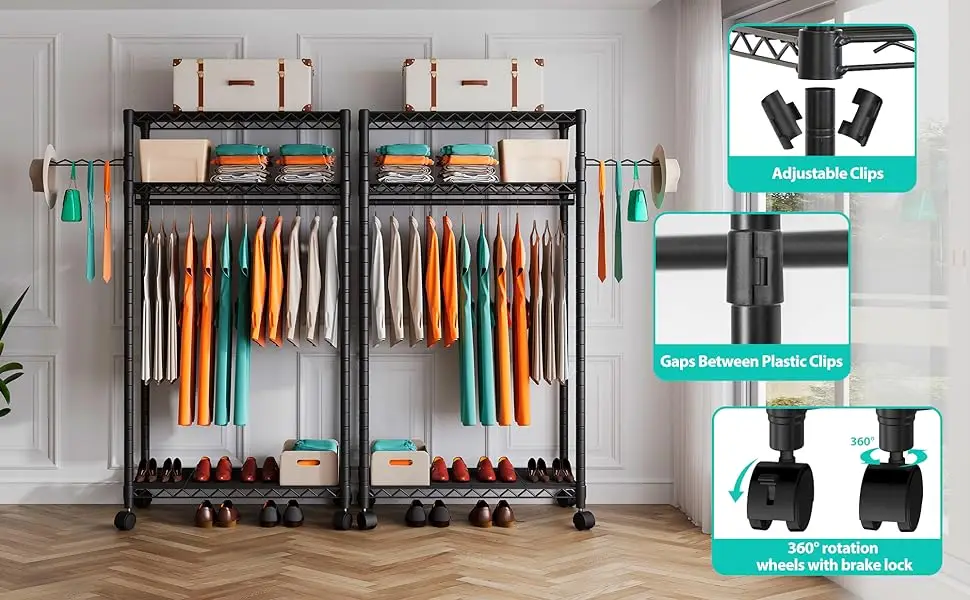 Rolling Garment Rack' HEAVY DUTY