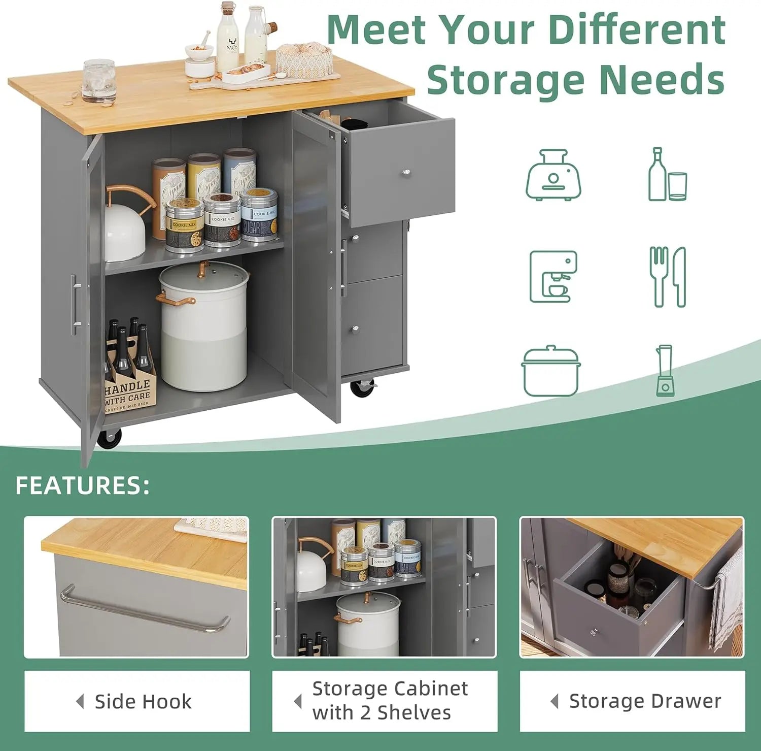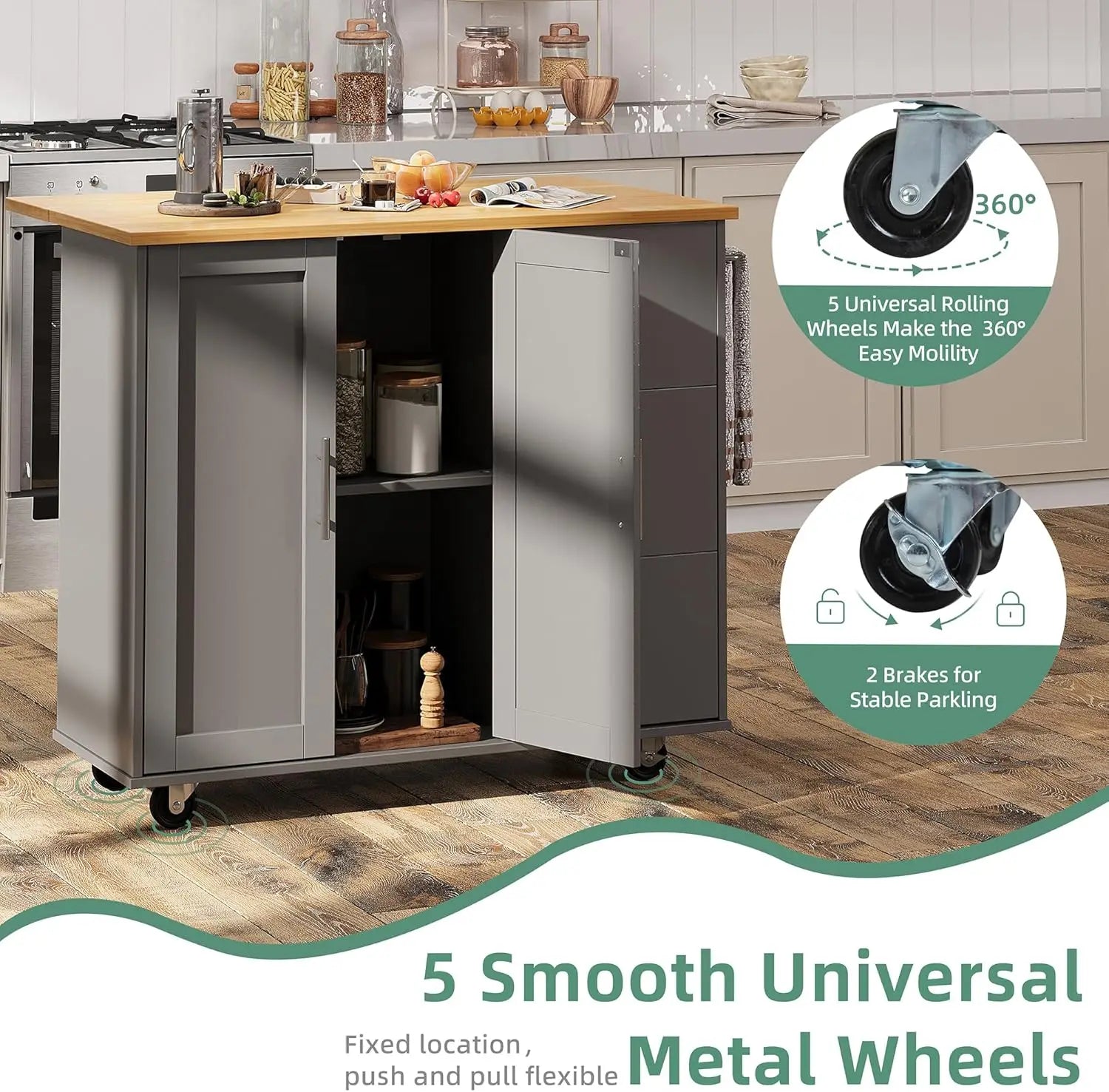 Rolling Kitchen Island Cart with Folding Drop Leaf Breakfast Bar, Portable Trolley