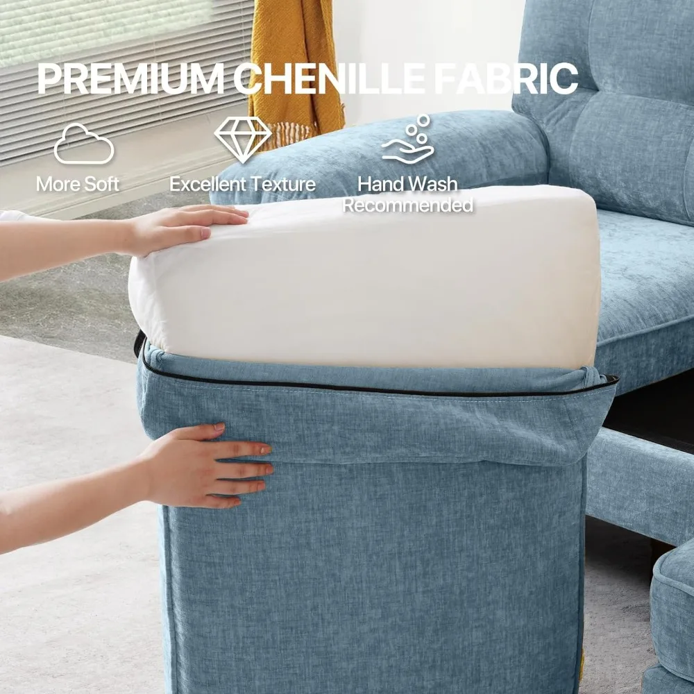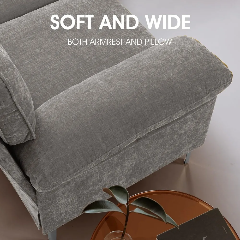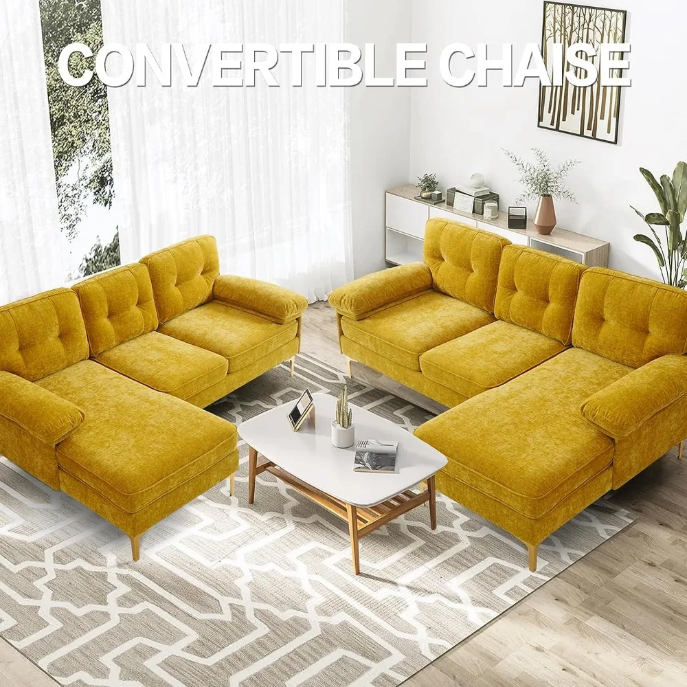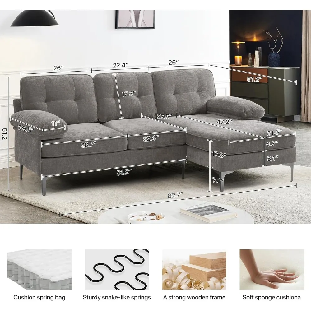 - MODERN STYLE: Modern styled chenille sectional sofa with features a reversible chaise. Solid wood frame, metal legs and removable cushions for machine washable.