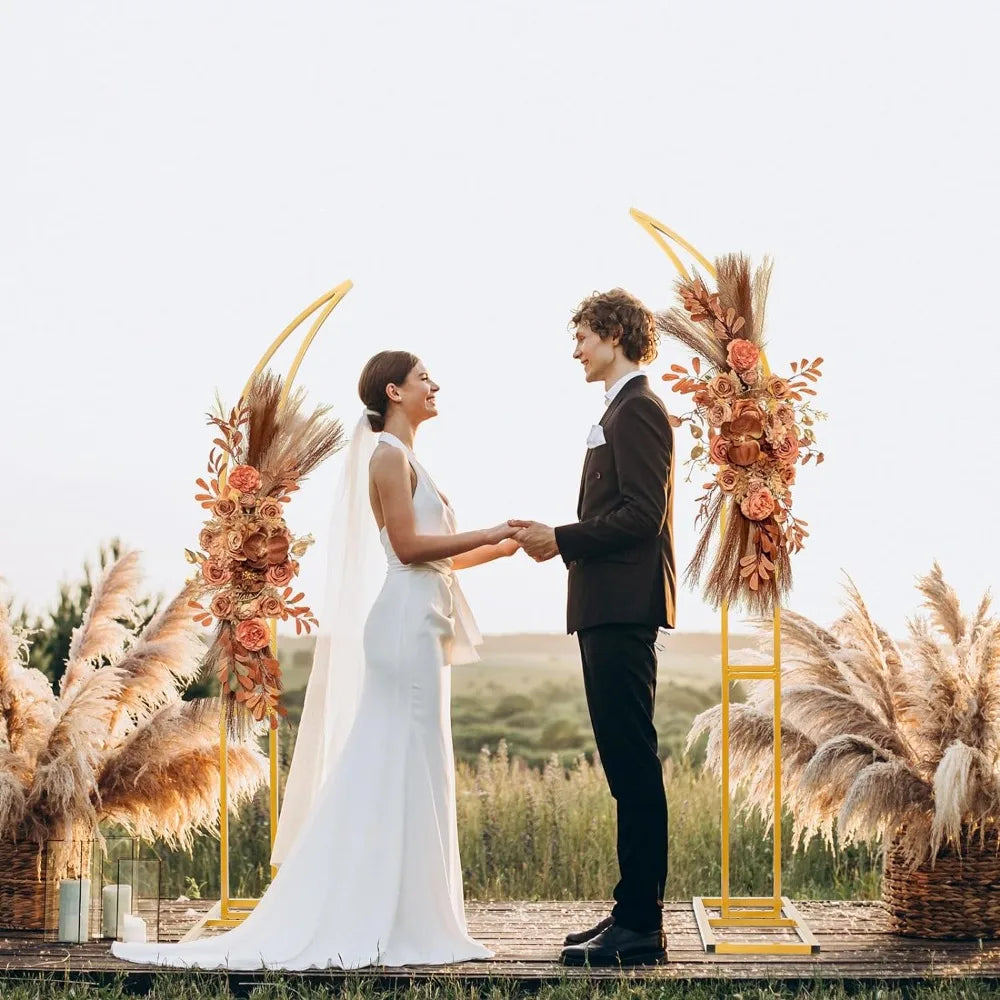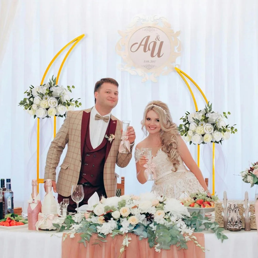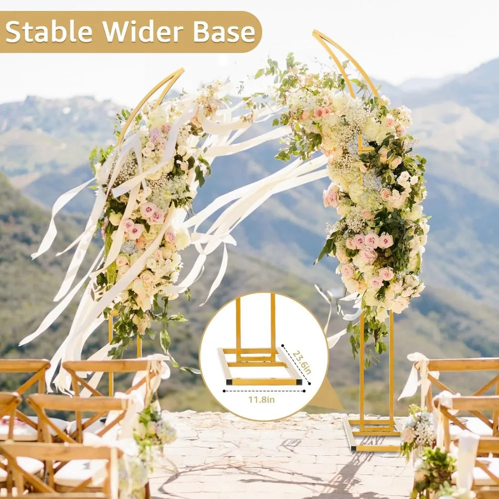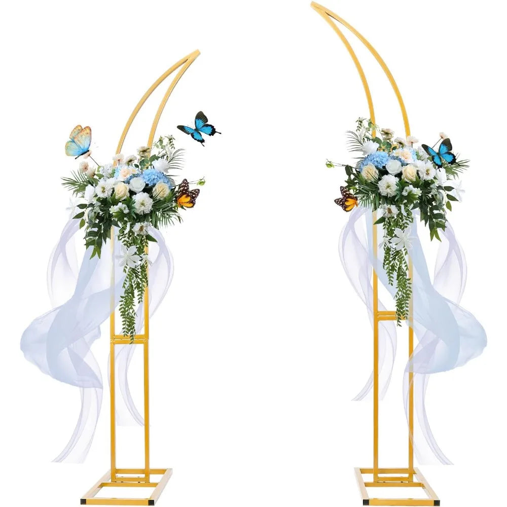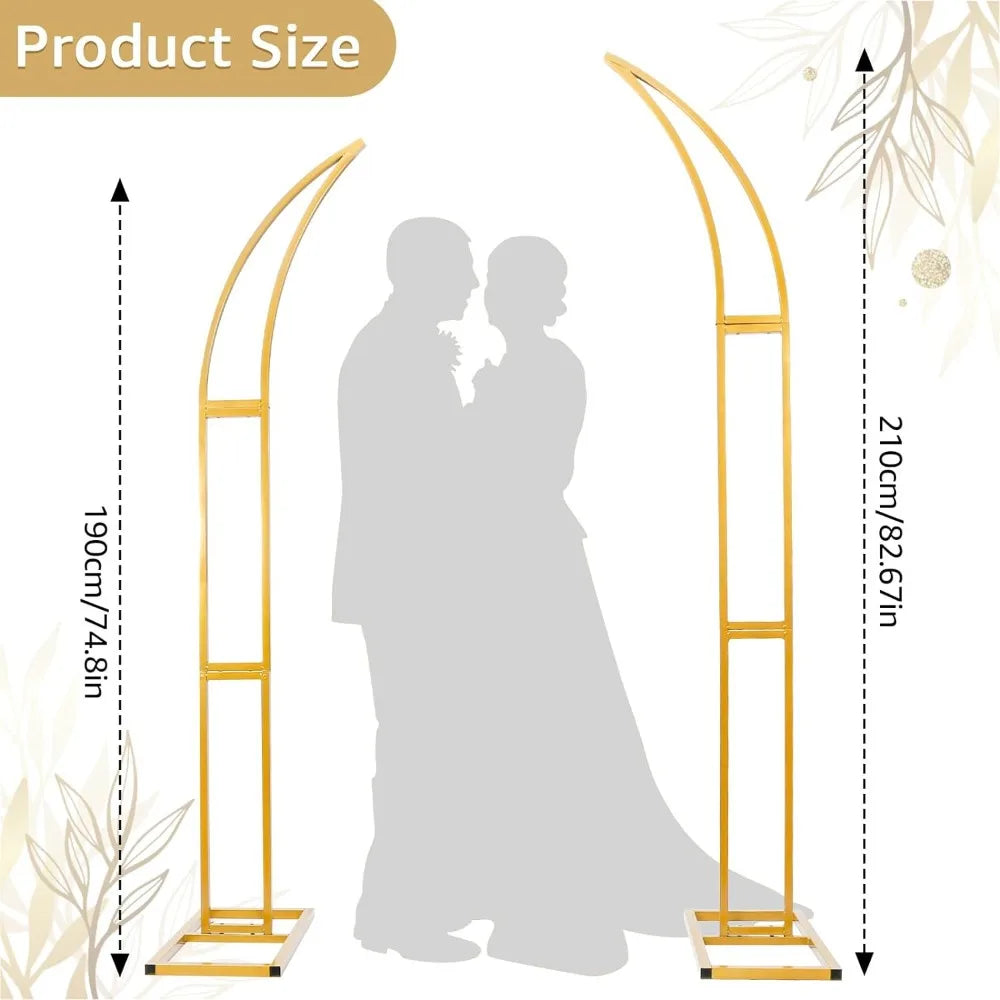 Set of 2 Curved Large Gold Metal Wedding Arch Backdrop Stand for Party, Balloon Arch Stand
