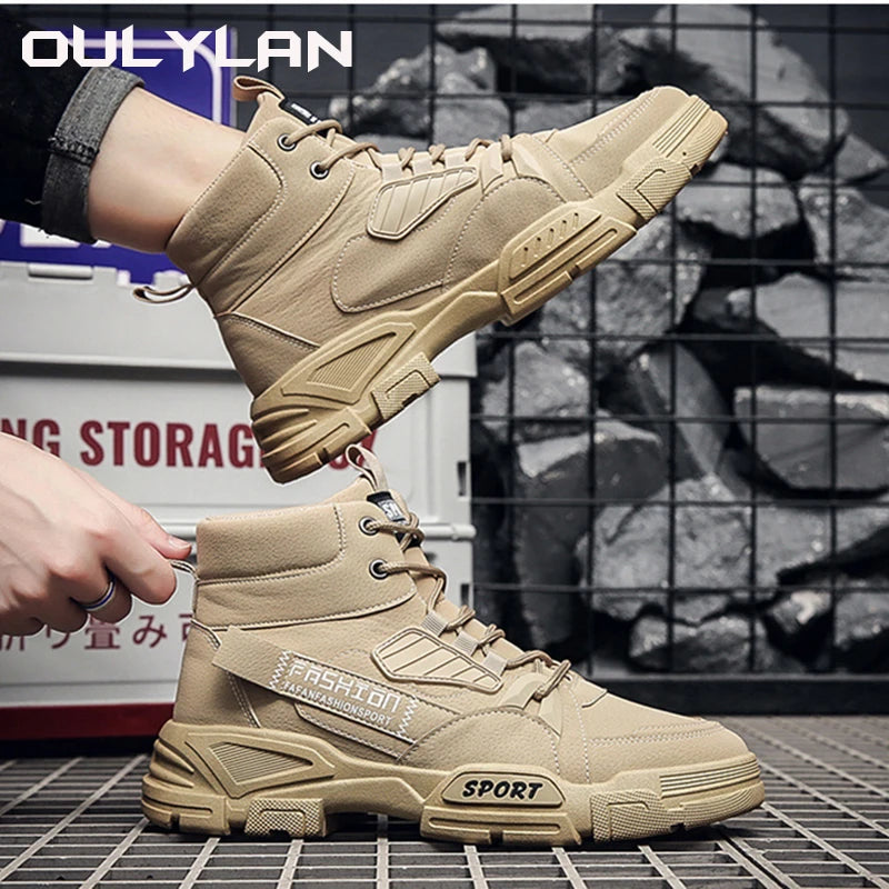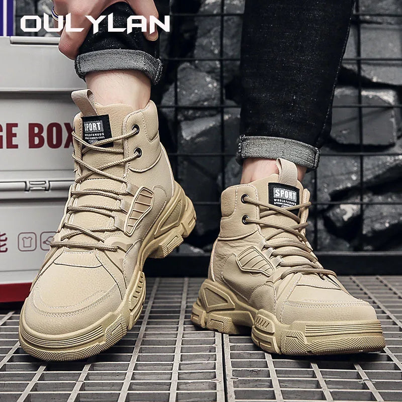 Shoes for Men Outdoor Work Boots Trendy Leather Boots High Top Footwear
