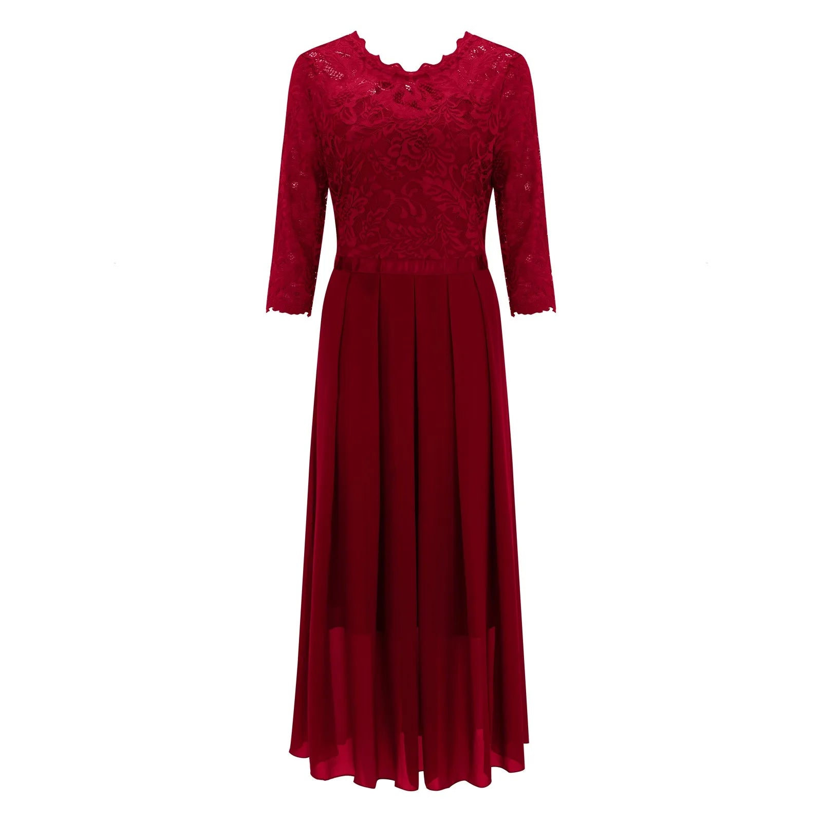 Solid Color Elegant Dresses for Women Lace Chiffon Hollowed Pleated Large Hem A-Line