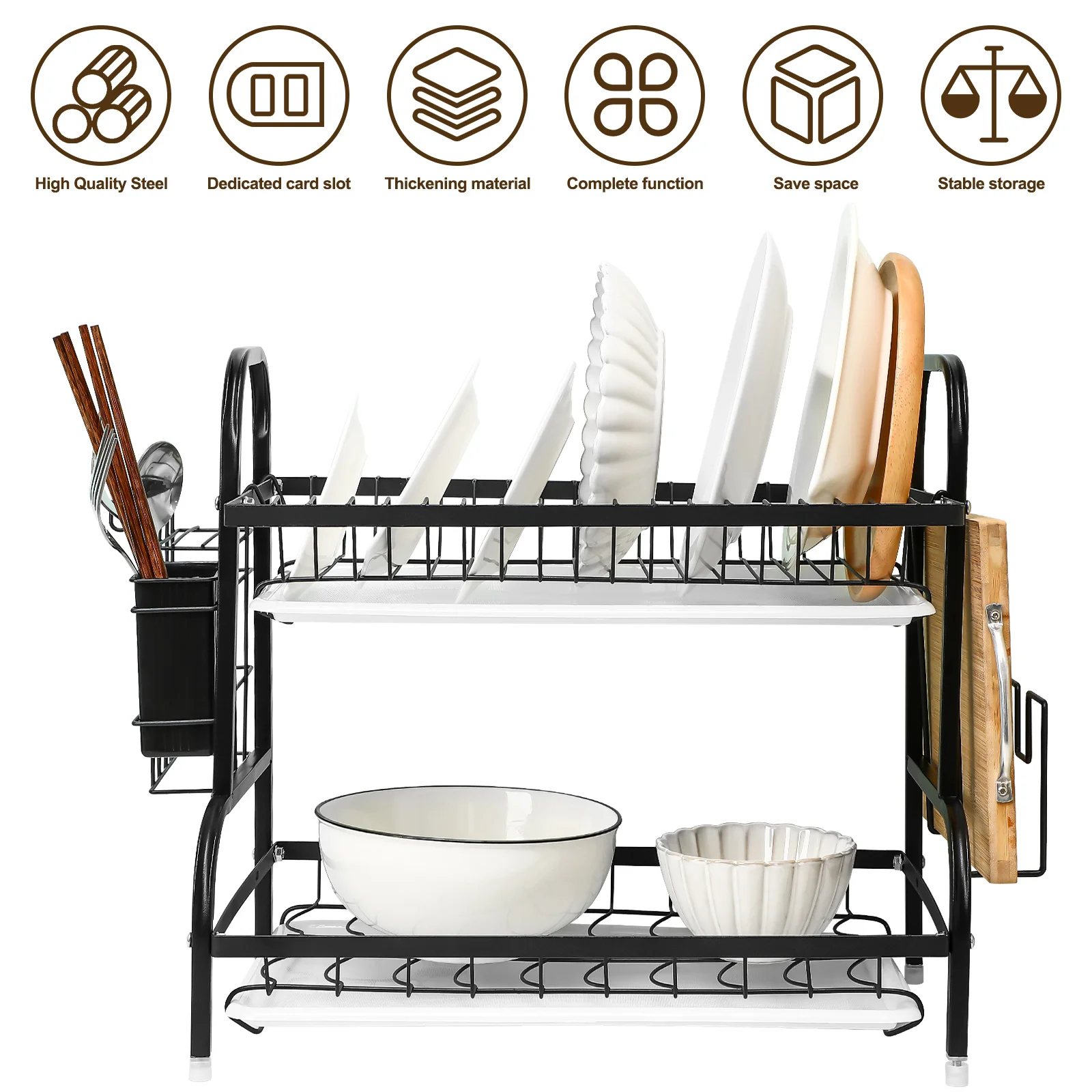 Tier Dish Drainer Rack Kitchen Plate Cutlery Drying Holder