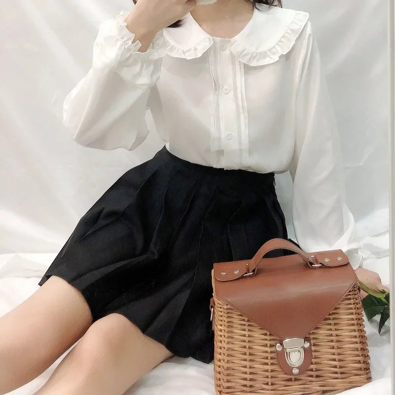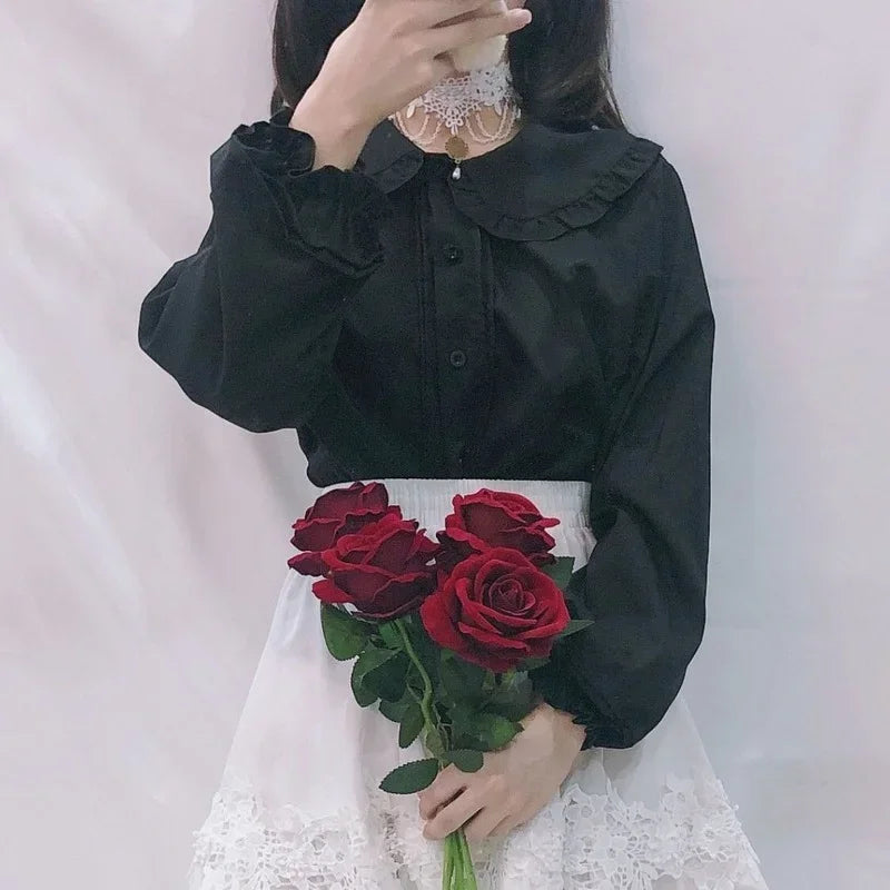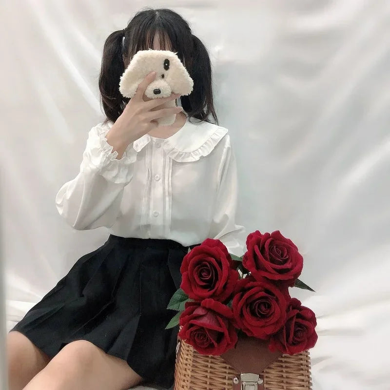 White Shirt Women Kawaii Long Sleeve