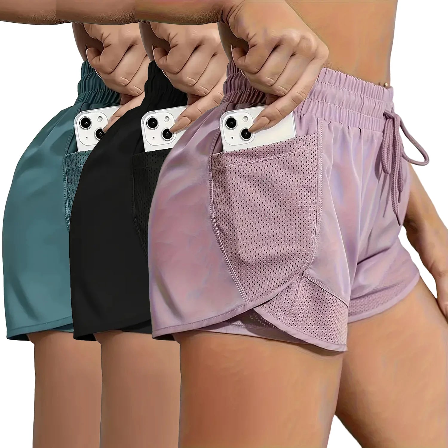 Women Running Sport Shorts High Waist Breathable Mesh Sweat Fitness Shorts Elasticity 2 in 1 Pants Yoga