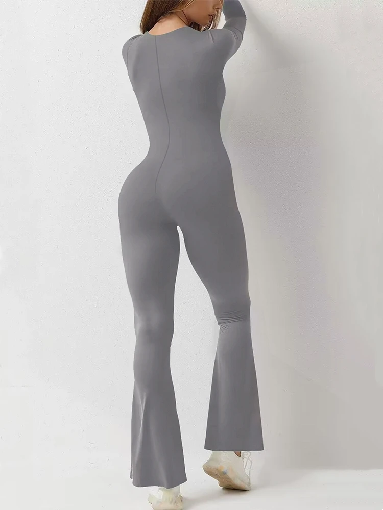 Women Wide Leg Yoga Bodysuit Outfit One Piece Gym Fitness Plus Size Jumpsuit