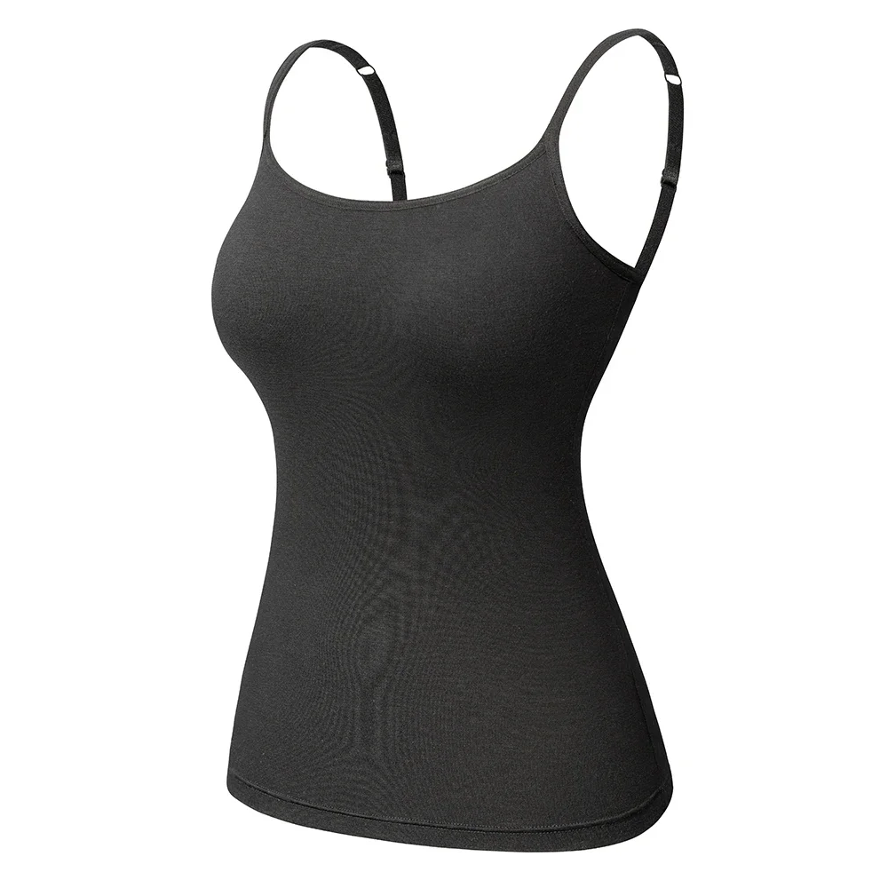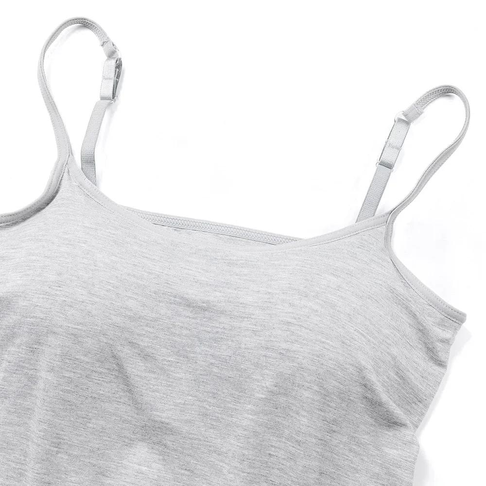 Women's Cotton Camisole with Bra Adjustable i Strap Tank Top Cami Tanks 2/3 Packs