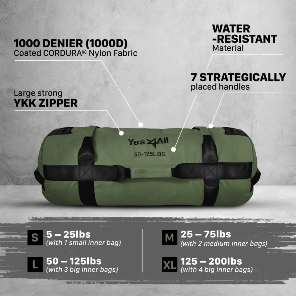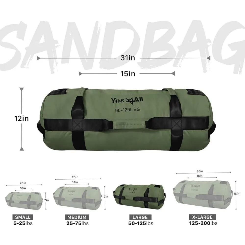 - JUST THE RIGHT SANDBAG: Yes4All Sandbags come in a variety of colors and capacities so you can choose the exact bag for your level of fitness and training goals: S (5-25 lbs), M (25-75 lbs), L (50-125 lbs) & XL (125-200 lbs)